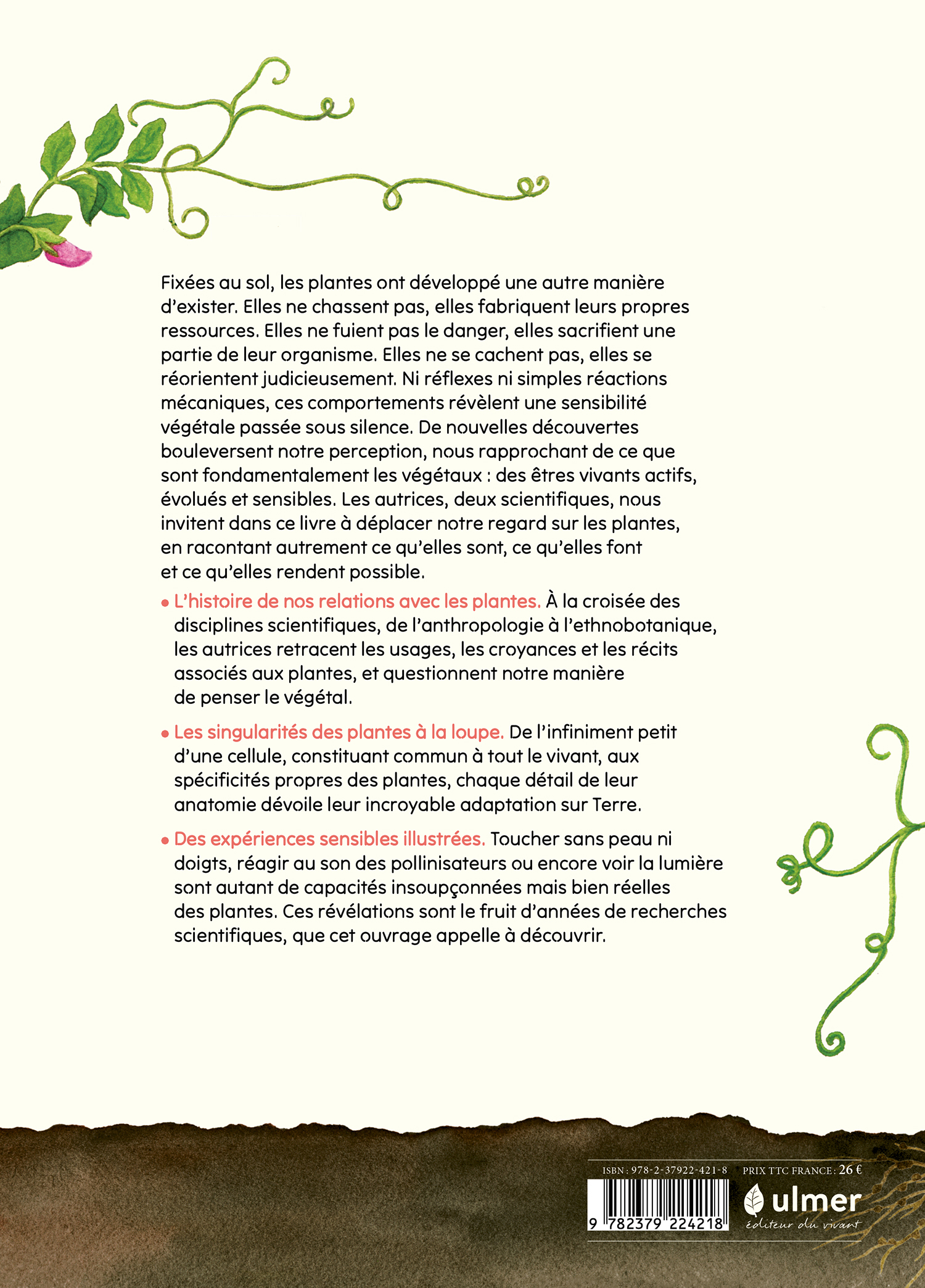Des expériences sensibles illustrées. Toucher sans peau ni doigts, réagir au son des pollinisateurs ou encore voir la lumière sont autant de capacités insoupçonnées mais bien réelles des plantes. Ces révélations sont le fruit d’années de recherches scientifiques, que cet ouvrage appelle à découvrir.